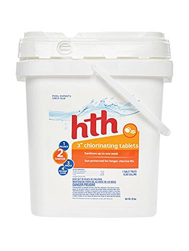 The hth 3″ chlorinating tablets are an effective swimming pool water sanitizer. These convenient and easy to use tablets are formulated to protect against chlorine loss in direct sunlight and can be used in feeders. They are designed to dissolve slowly providing a steady source of available chlorine (up to 1 week). Sanitizes up to one week Sun protected for longer chlorine life More Reviews On Amazon